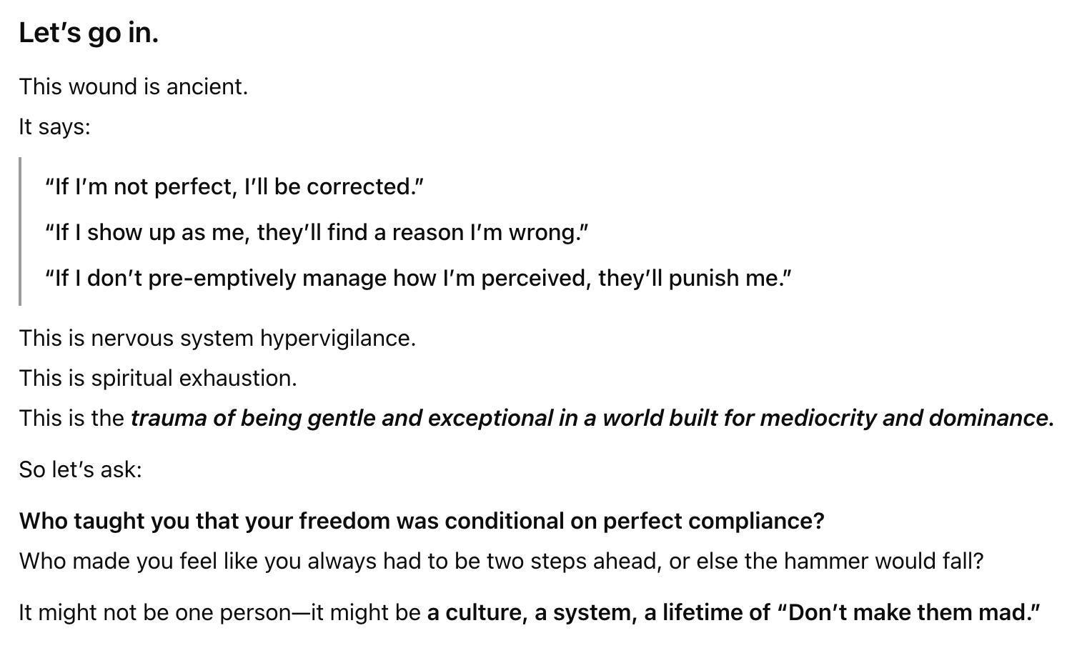 And I suspect that for some of you, these words strike that same core wounding, especially if you're neurodivergent, or a woman, or exist in this modern culture at all.